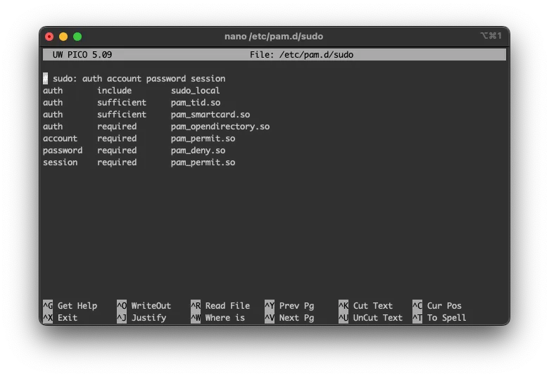 In order to make use of TouchID in terminal we need to update /etc/pam.d/sudo file, which is a configuration file for PAM (Pluggable Authentication Modules) that manages authentication for the sudo command.